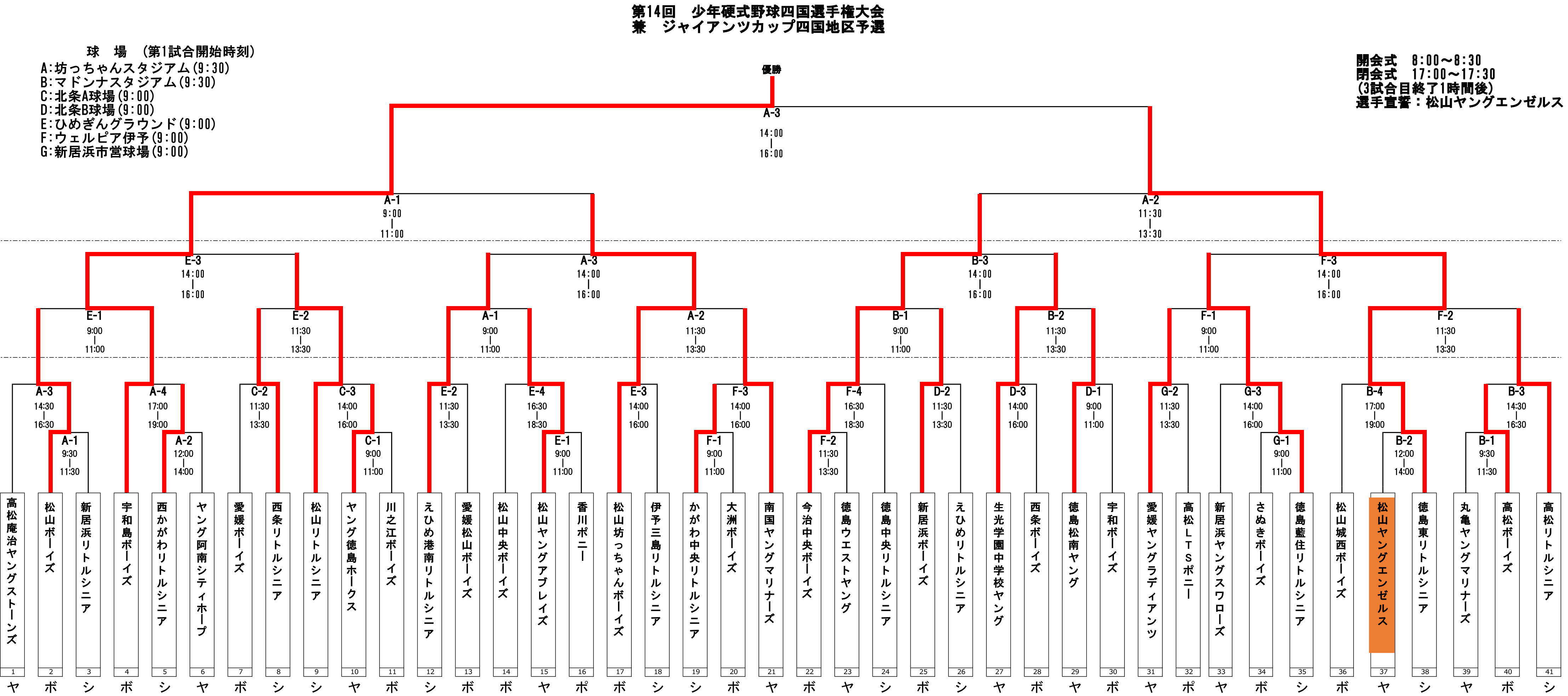 第14回少年硬式野球四国選手権大会 組み合わせ表